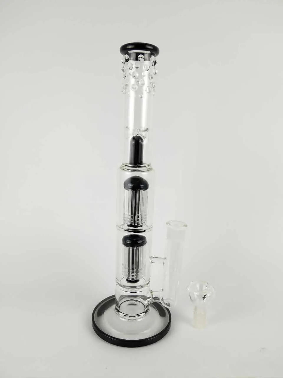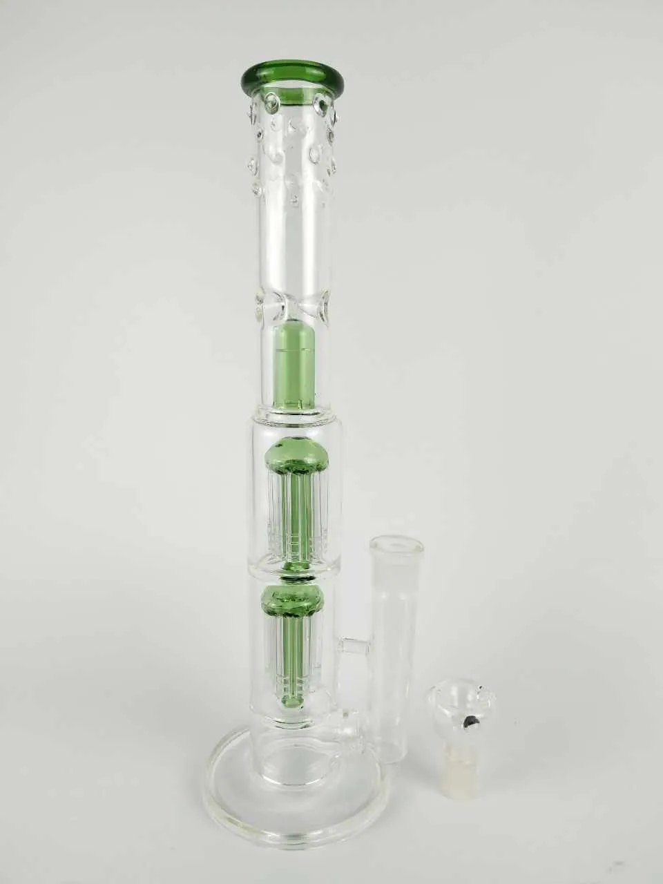 Introducing our exquisite 17.0-inch Triple Chamber Glass Piece, a perfect fusion of functionality and artistry. This unique item is designed not only for superior performance but also as a stunning addition to any collection. The intricate dot neck and fish mouth design add a touch of elegance, making it a standout piece among glassware.