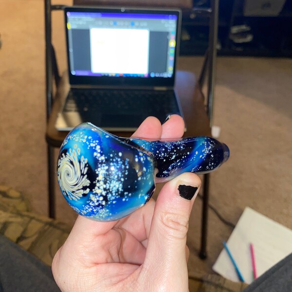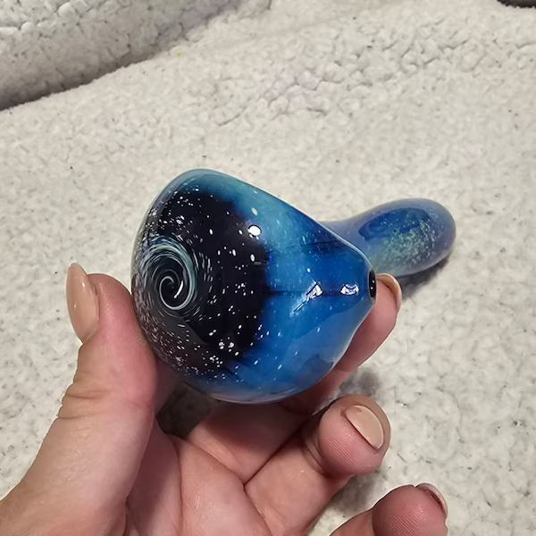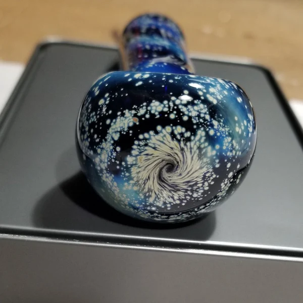 Immerse yourself in the beauty of the cosmos with this exquisite Blue Cosmic Glass Artwork. Inspired by the wonders of the universe, this piece is a fusion of craftsmanship and imagination, showcasing swirling galaxies and starry skies in stunning detail. Whether displayed as a centerpiece or held in your hands, this artwork radiates sophistication and celestial charm.
